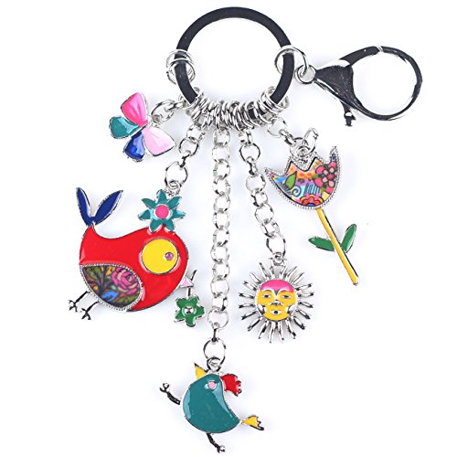 Best Seller! BONSNY Woodland Collection "ROBIN and FRIENDS" Multi Charm Large Statement Keyring Handbag Ring (Multi) Review