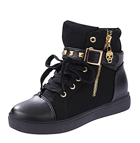 Best Seller! iMaySon Womens Skull Canvas Lace-up Zipper Increat Confortable Sneaker Sports Shoes (UK 6.5 Color Black) Review