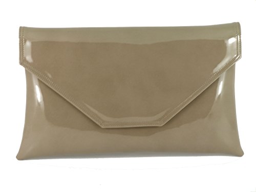 Best Seller! Loni Stylish Large Envelope Patent Clutch Bag/Shoulder Bag Wedding Party Prom Bag in Taupe (dark beige) Review