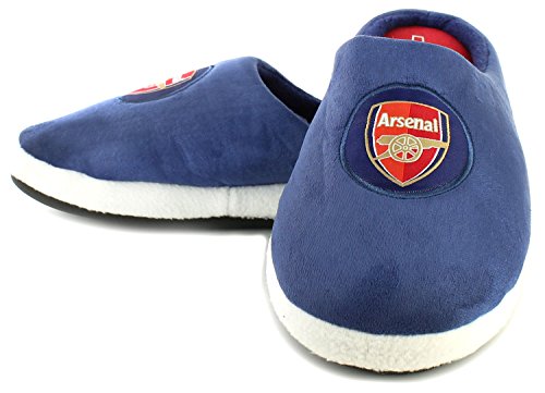 Arsenal Arsenal Mule Mens Slippers. Mens/Gents Immitation Suede Slip On Novelty Mule Slippers With Official Arsenal Woven Logo/Badge To The Front. Contrast Sock Colour With Cannon Detail To The Heel.. Navy/Red.