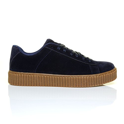 ShuWish UK offer RIHANNA Navy Blue Faux Suede Upper Beige Chunky Sole Lace Up Creeper Trainer Size UK 3 EU 36. This awesome product currently limited units, you can buy it now for £20.99, You save -