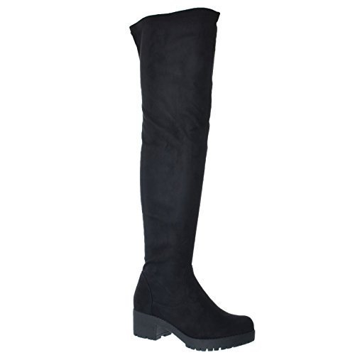 Miss Image UK offer WOMENS LADIES THIGH HIGH OVER THE KNEE FLAT LOW BLOCK HEEL STRETCH BOOTS SIZE [Black Faux Suede UK 3 / EU 36 / US 5]. This awesome product currently limited units, you can buy it now for £21.99, You save -